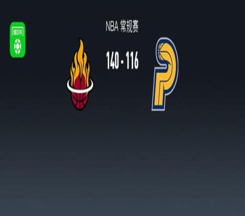 第四节热火尼古拉-约维奇拿下10分,步行者马图林拿下13分,最终热火140-116战胜步行者
